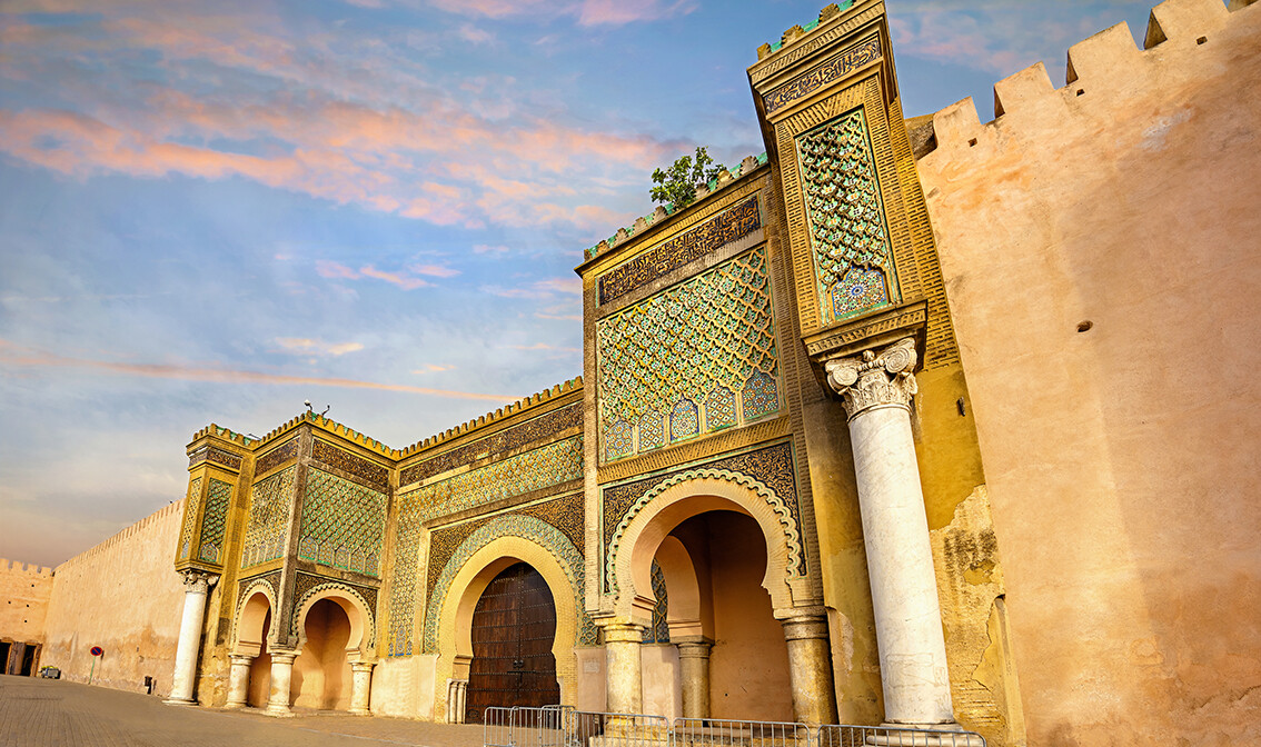 Nakon doručka razgled grada: obilazak džamije Karaouiine i mauzoleja Moulay Idrissa (izvana), posjet štavionici kože. Potom, ulazak u srednjovjekovnu medinu Fes el Bali kroz vrata Bab Boujloud. Šetnja bučnim, šarolikim uličicama souka – tržnice u kojoj su na svakom uglu izvješeni tepisi, kožne rukotvorine, tradicionalan i moderan nakit, začini, biljke, ulje… Razgled sveučilišta Medresa Bouanania, nastavak šetnje do trga Ej Najjarine s istoimenom fontanom. Fes je osnovao Moulay Idriss tijekom 8. stoljeća i u prošlosti je bio glavni grad nekoliko dinastija.