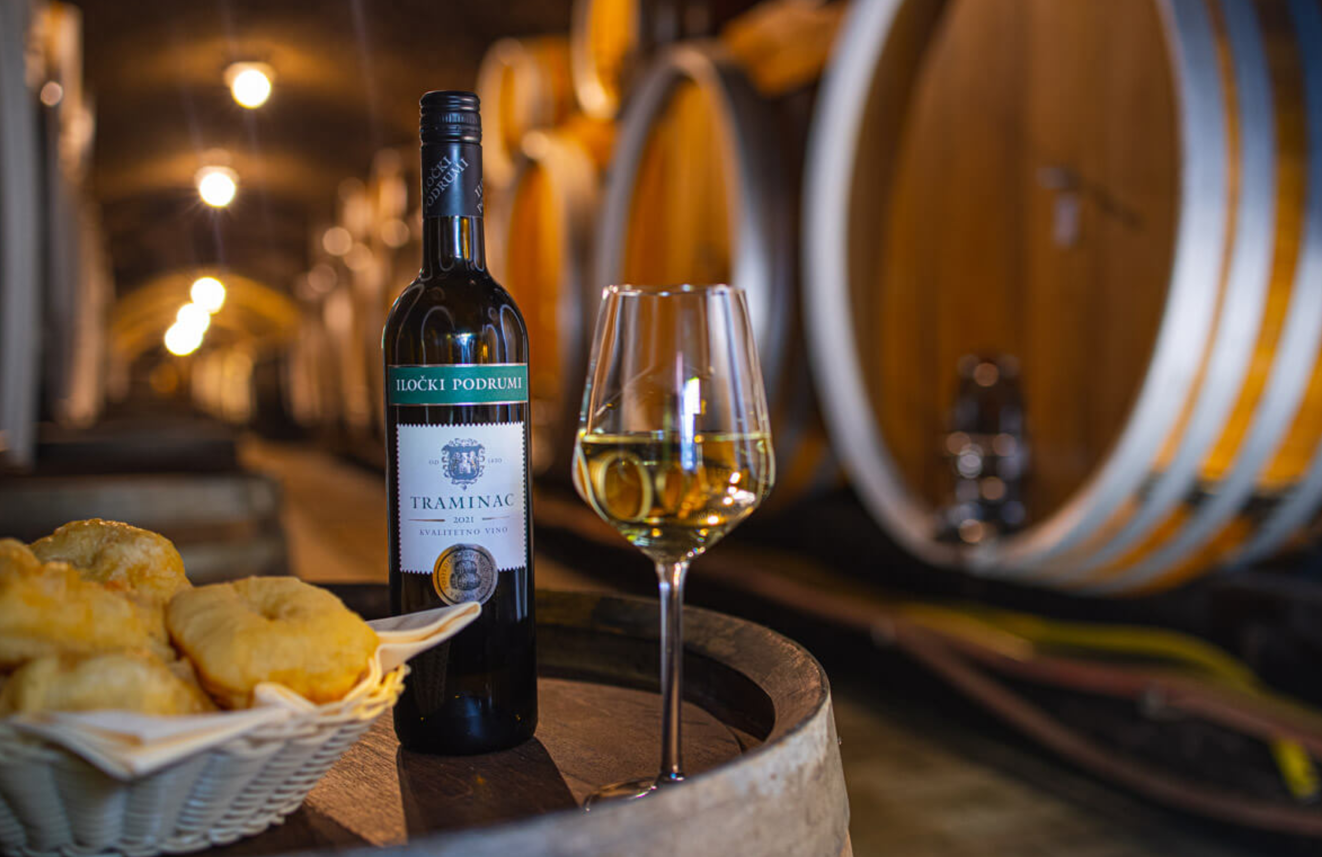 - posjet Iločkim podrumima uz stručno vodstvo te degustaciju 3 vrhunska vina Iločkih Podruma uz slane lepinjice, sir i kruh