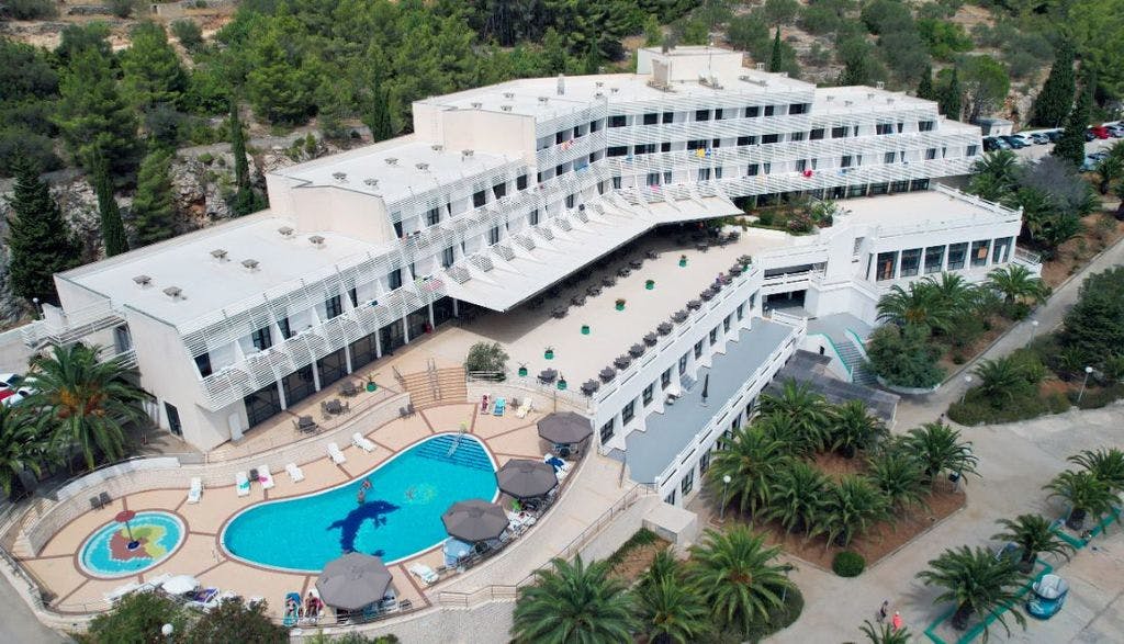 HOTEL ADRIA 3 *** VELA LUKA - Hotel Adria smješten je na mirnoj lokaciji, na otoku Korčuli, u jedinstvenom skladu zelenila maslina i plavetnila mora. Hotel se nalazi u uvali Plitvine, 2.5 km od centra Vele Luke, na prekrasnom položaju uz more. Hotel raspolaže sa 127 klimatiziranih soba, uglavnom s balkonom, koje ovisno o položaju pružaju inspirirajući pogled na more ili umirujući pogled na park, a sve su opremljene klimom, satelitskom televizijom, kupaonicom i sušilom za kosu. U novouređenom restoranu gostima se u opuštajućem okruženju svakodnevno servira bogat izbor buffet jela i pića za doručak i večeru. Gosti mogu uživati u kupanju na vanjskom bazenu. Za najmlađe tu su odvojeni dječji bazen, a gostima željnih sportskih aktivnosti na raspolaganju su dva teniska terena i teretana (uz nadoplatu na recepciji). Gostima je na raspolaganju šljunčana plaža. Prijava u 14:00 sati, odjava iz hotela u 10:00 sati.