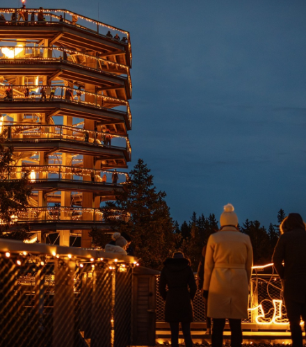 Polazak u 08:30 sati s autobusnog kolodvora Čakovec te u 09:00 sati sa parkirališta preko puta groblja u Varaždinu. Vožnja kroz Hrvatsku i Sloveniju , uz kraća zaustavljanja putem radi odmora, sve do Maribora. Dan započinjemo posjetom Mariboru, čiji se povijesni trgovi i ulice pretvoreni u bajkovitu blagdansku pozornicu ispunjenu mirisima kuhanog vina, božićnih kolača i veselog duha. Po dolasku šetnja i razgled grada. Preporučamo šetnju: Slomškov trg sa katedralom – glavni gradski trg sa Gradskom vijećnicom – Dvorski trg na kojem se nalazi Mariborski dvorac i Pokrajinski muzej, Lenta u kojemu se mogu vidjeti ostaci velebnih gradskih zidina, ali i koji je poznat po proizvodnji najstarijeg vina na svijetu, s tradicijom starom preko 400 godina sa Starom Trtom, zgrada koja je pretvorena u muzej i u kušaonicu vina. Slobodno vrijeme za individualne programe i uživanje u programima te shoppingu u EUROPARKU. Nakon uživanja u gradskom ambijentu sljedi okupljanje grupe u dogovoreno vrijeme te dan nastavljamo u prirodnom okruženju Pohorja gdje nas čeka šetnja visoko iznad tla, među krošnjama stoljetnih stabala – nezaboravno iskustvo za sve generacije – PUT MEĐU KROŠNJAMA / ČAROBNA ŠUMA. Put između krošanja nalazi se u srcu moćne pohorske šume, na vrhu Rogle, na nadmorskoj visini od 1517 metara. Put dužine od 1000 metara provest će vas kroz raznoliku šumu, gdje ćete naići na mnoga iznenađenja i uživati u pogledu na stotine godina staru pohorsku šumu… Šetnja kroz krošnje drveća Čarobna šuma nudi raznoliku paletu svjetlosnih instalacija, s više od 2 kilometra noćnih svjetala, 12 šumskih životinja, velikim ukrasima, božićnim drvcem i drugim iznenađenjima usput. Zahvaljujući naprednoj LED tehnologiji i minimalnoj emisiji svjetlosti, cijelo iskustvo troši manje od 4 kWh energije. To osigurava minimalan utjecaj na prirodu i divlje životinje, omogućujući vam da se potpuno uronite u čaroliju šume. Prošećite Čarobnom šumom i istražite noćni krajolik Pohorja. Savršena avantura za sve uzraste i sposobnosti zimi. Nakon šetnje i uživanja u pogledu povratak prema Varaždinu i Čakovcu. Očekivani dolazak je u večernjim satima.