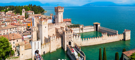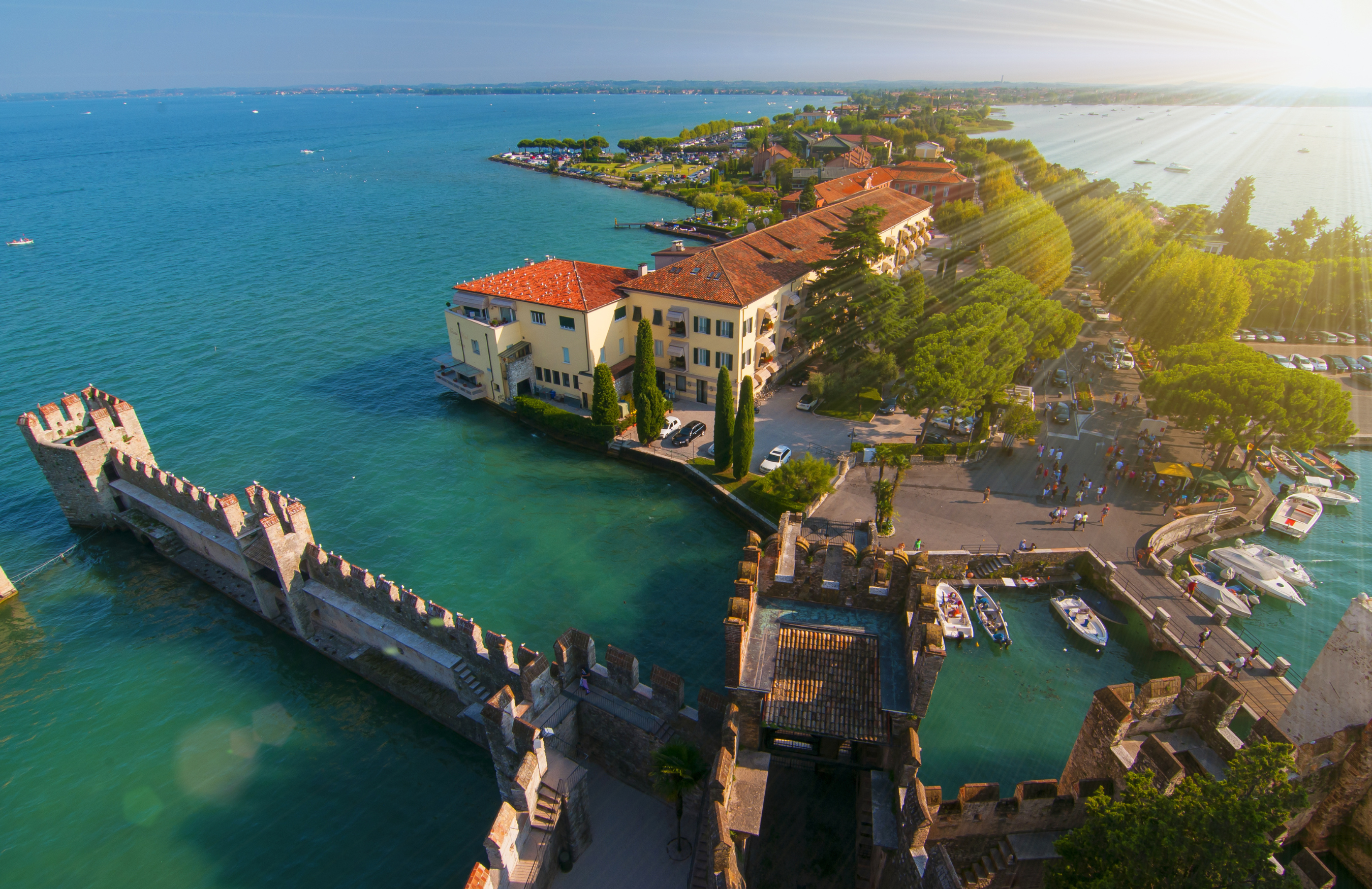 SIRMIONE, smješten na južnom vrhu Gardskog jezera u talijanskoj regiji Lombardija, jedno je od najšarmantnijih i najposjećenijih mjesta u sjevernoj Italiji. Poznat po svojoj bogatoj povijesti, termalnim izvorima i slikovitom starom gradu. Castello Scaligero: Impresivna srednjovjekovna tvrđava iz 13. stoljeća, okružena vodom, s tornjevima i zidinama koje pružaju panoramski pogled na jezero. Ova utvrda je jedna od najbolje očuvanih u Italiji i simbol Sirmionea.Grotte di Catullo: Ostaci rimske vile iz 1. stoljeća, smješteni na sjevernom dijelu poluotoka. Iako naziv sugerira špilje, radi se o ruševinama luksuzne rimske rezidencije, okružene maslinicima i s pogledom na jezero. Termalni izvori: Sirmione je poznat po svojim termalnim vodama bogatim sumporom, koje se koriste u lječilištima poput Terme di Catullo i Terme Virgilio. Ove toplice nude razne tretmane za opuštanje i zdravlje.