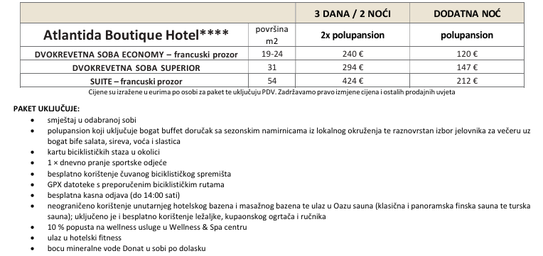 Navedene cijene koje su naznačene kod smještajnih paketa na internet stranici su najniže moguće cijene po kojima je moguće izvršiti rezervaciju.